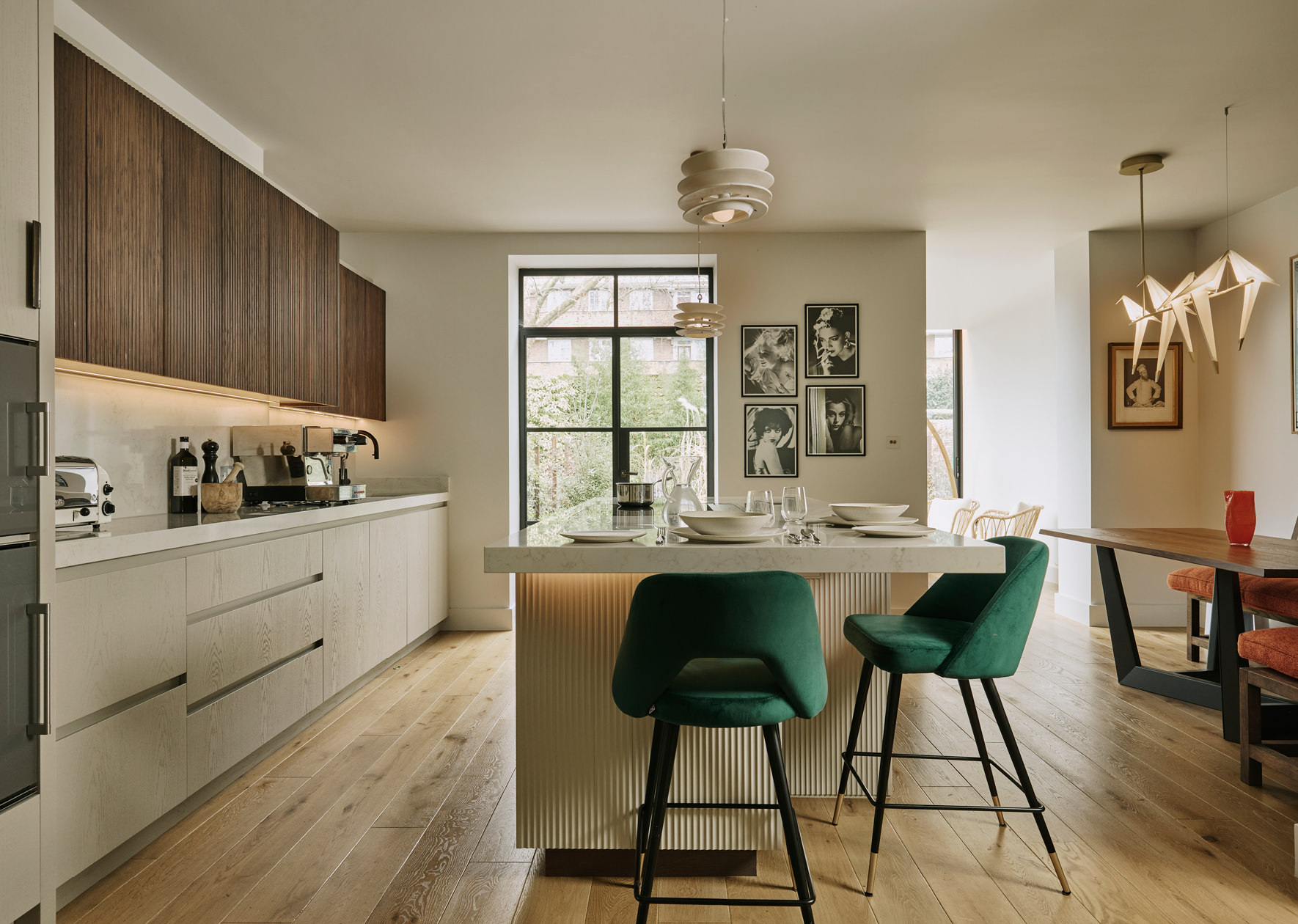 “This kitchen is a true reflection of Ledbury Studio’s dedication to innovative materials and meticulous craftsmanship,” says Charlie Smallbone. “The blend of glamour and practicality is seamless, creating a space that is as stunning as it is functional. And what better testament to its success than the client hosting a 50-guest gathering just one week after installation – effortlessly entertaining in her spectacular new kitchen!”