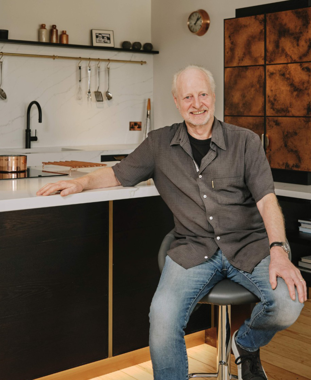We gain enormous pleasure from Charlie’s use of beautifully crafted materials – the metal trims, brass hinges and copper panels give the kitchen both a distinctive and a sophisticated look.