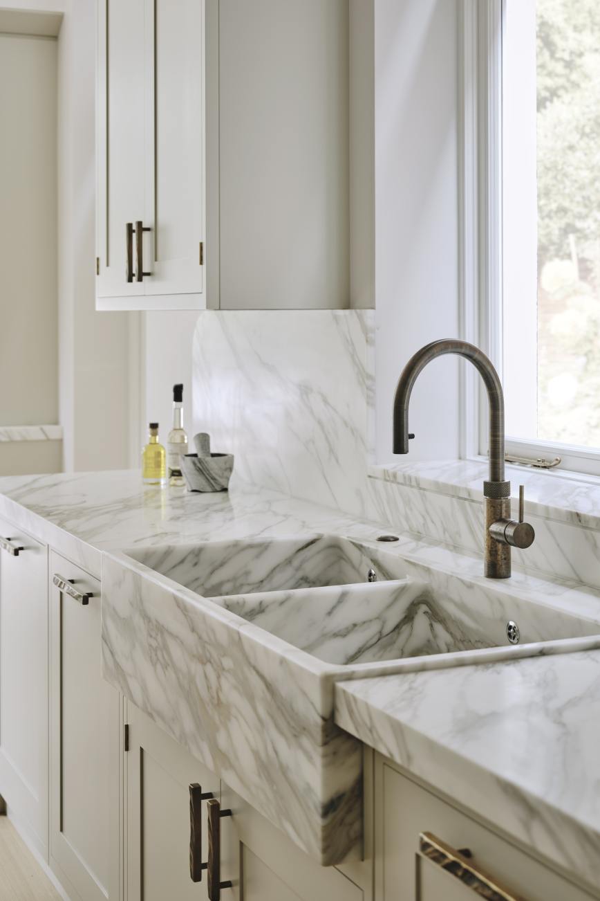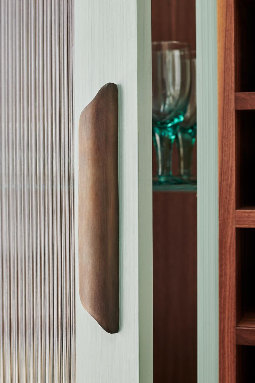 A modern cornice, original cast handles, and the beautiful hand painted finish contrive to create a unique impact. Simple becomes decorative through the medium of design.