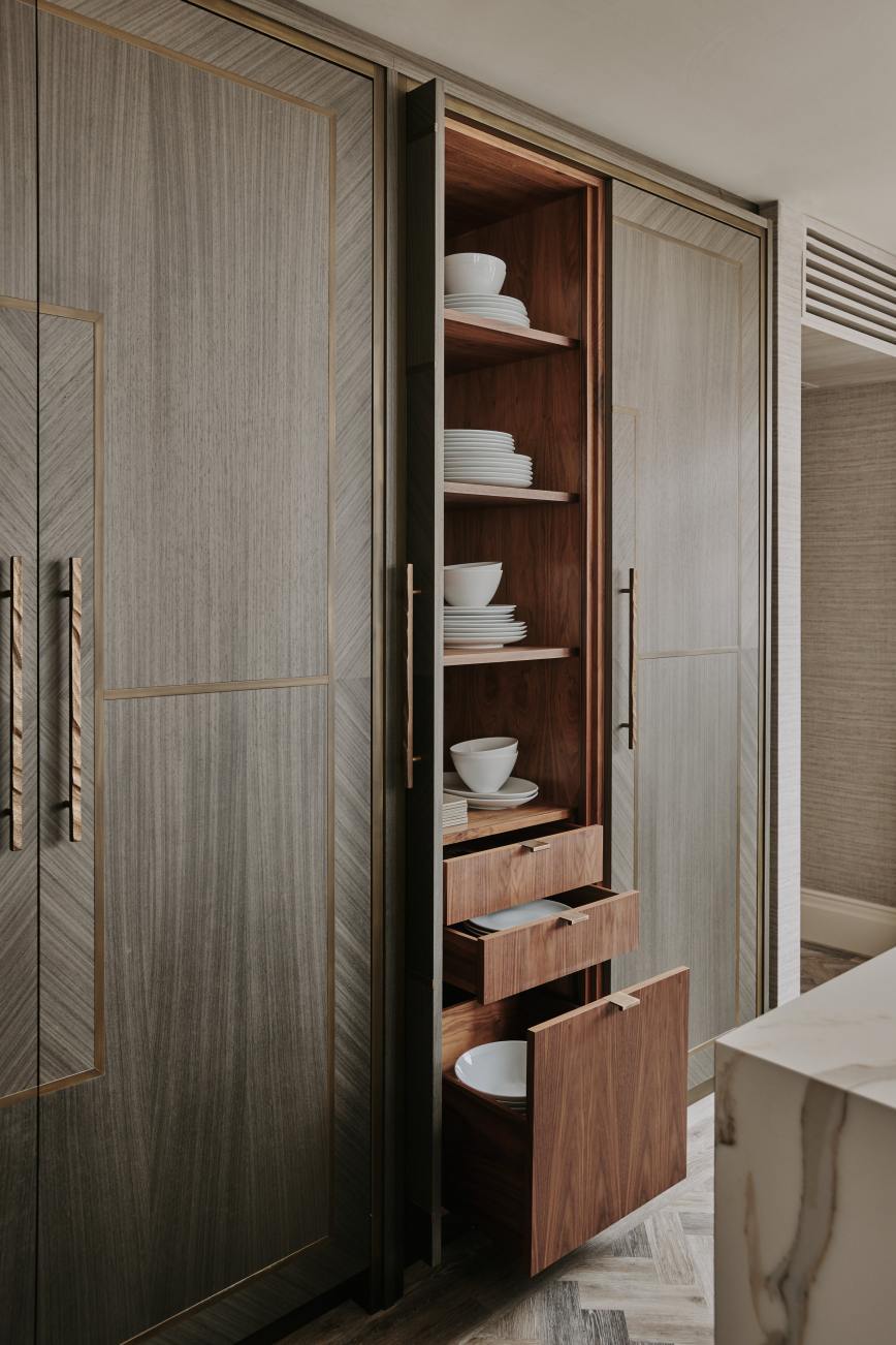 The Marquetry style, in keeping with Ledbury Studio’s other kitchen designs is a contemporary take on traditional artisanal skills.