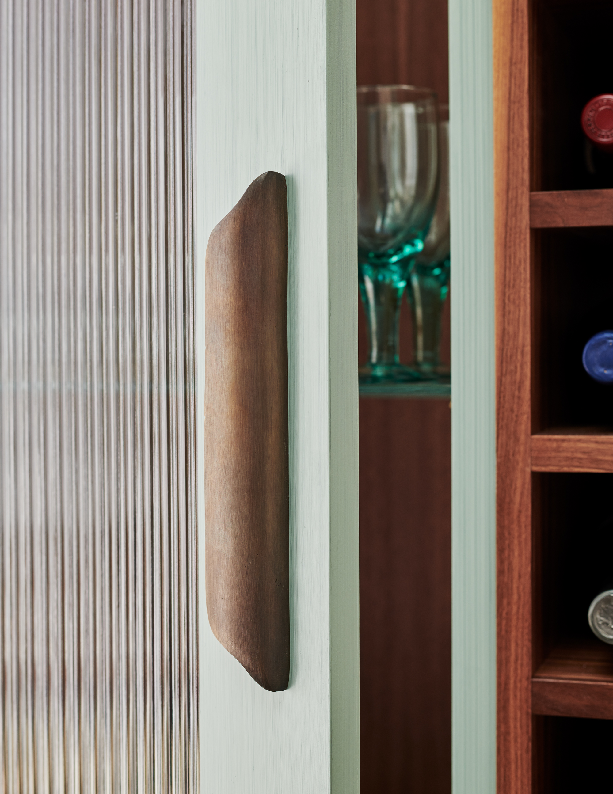 Our kitchen is a long and narrow space but Charlie and the team at Ledbury Studio have done an amazing job of fitting absolutely everything in that we wanted. From a breakfast cupboard and a place for all our cookbooks to plenty of worktop space and cupboards that extend all the way up to the ceiling, it’s perfectly tailored to our lives. Though I have to say, the stand-out feature is the verre eglomise splashback. We knew we wanted a floral motif and Charlie went out of the way to achieve this stunning design. We love it.